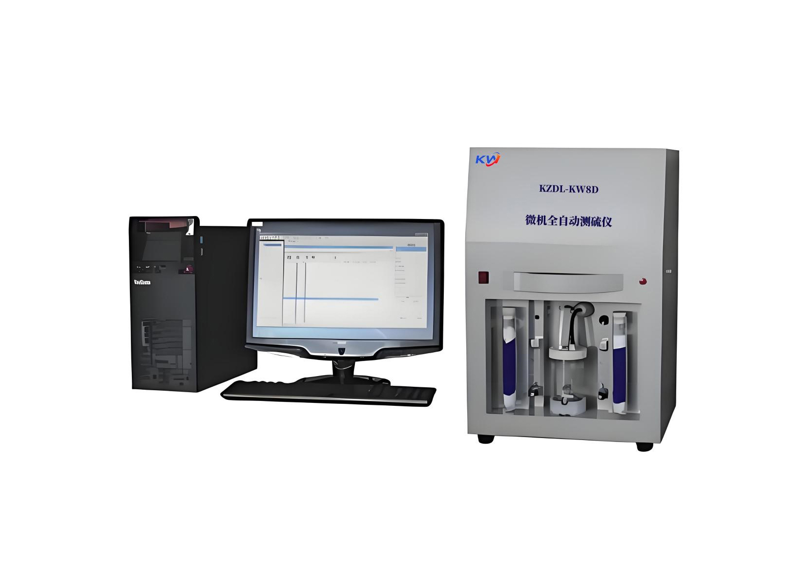 1、一体化结构,将自动送样装置、立式高温裂解炉、电解池、搅拌器、空气净化器等系统部件合理的装配在一个箱体内。